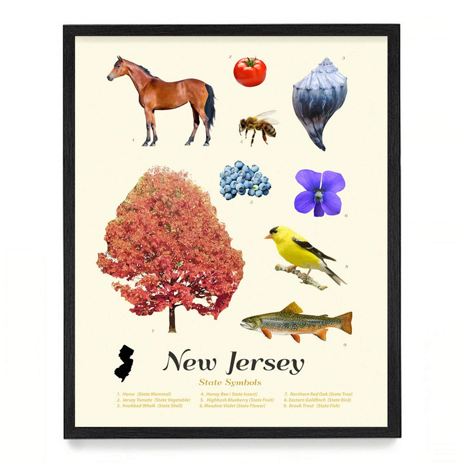 Amazon Com Wunderkammer Studio New Jersey State Symbols Poster Print New Jersey Wall Art House Home Decor New Jersey Gift 16 X 20 Framed Print Posters Prints